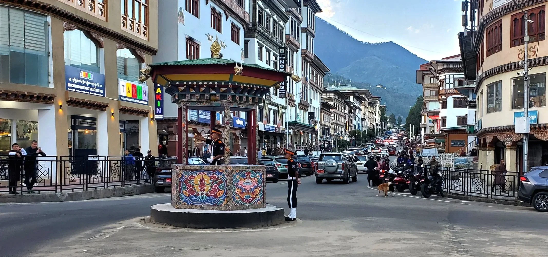 On our way back to our hotel we stopped briefly downtown to watch the famous traffic police at the central roundabout (no traffic lights in Thimphu).