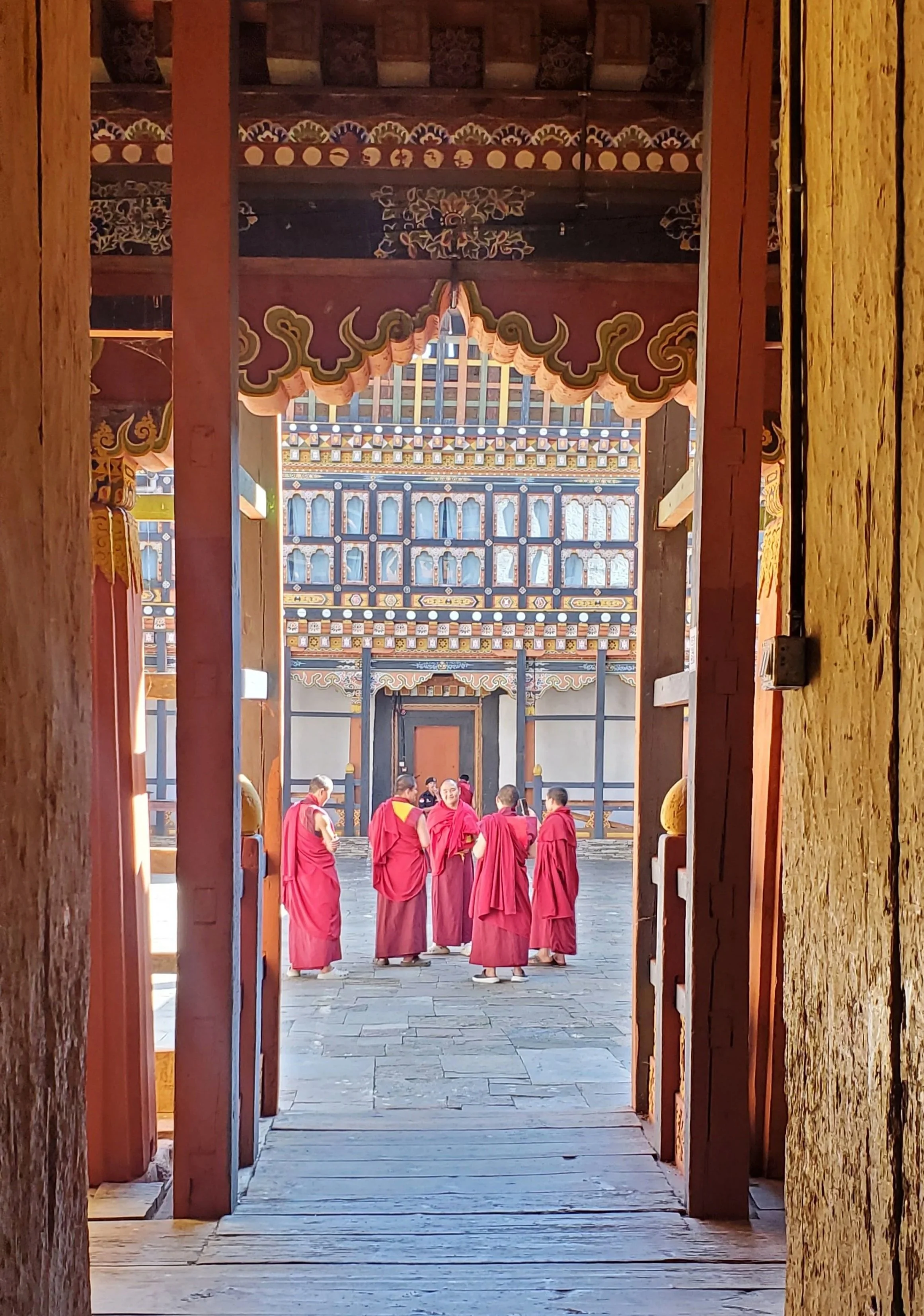 We witnessed a procession of monks arriving at one of the dzong’s temples.