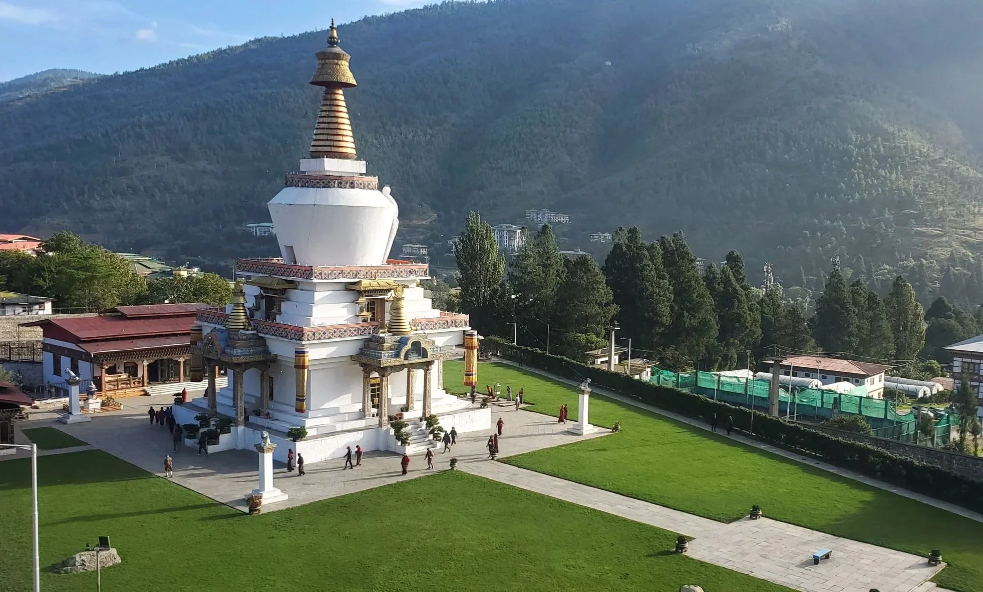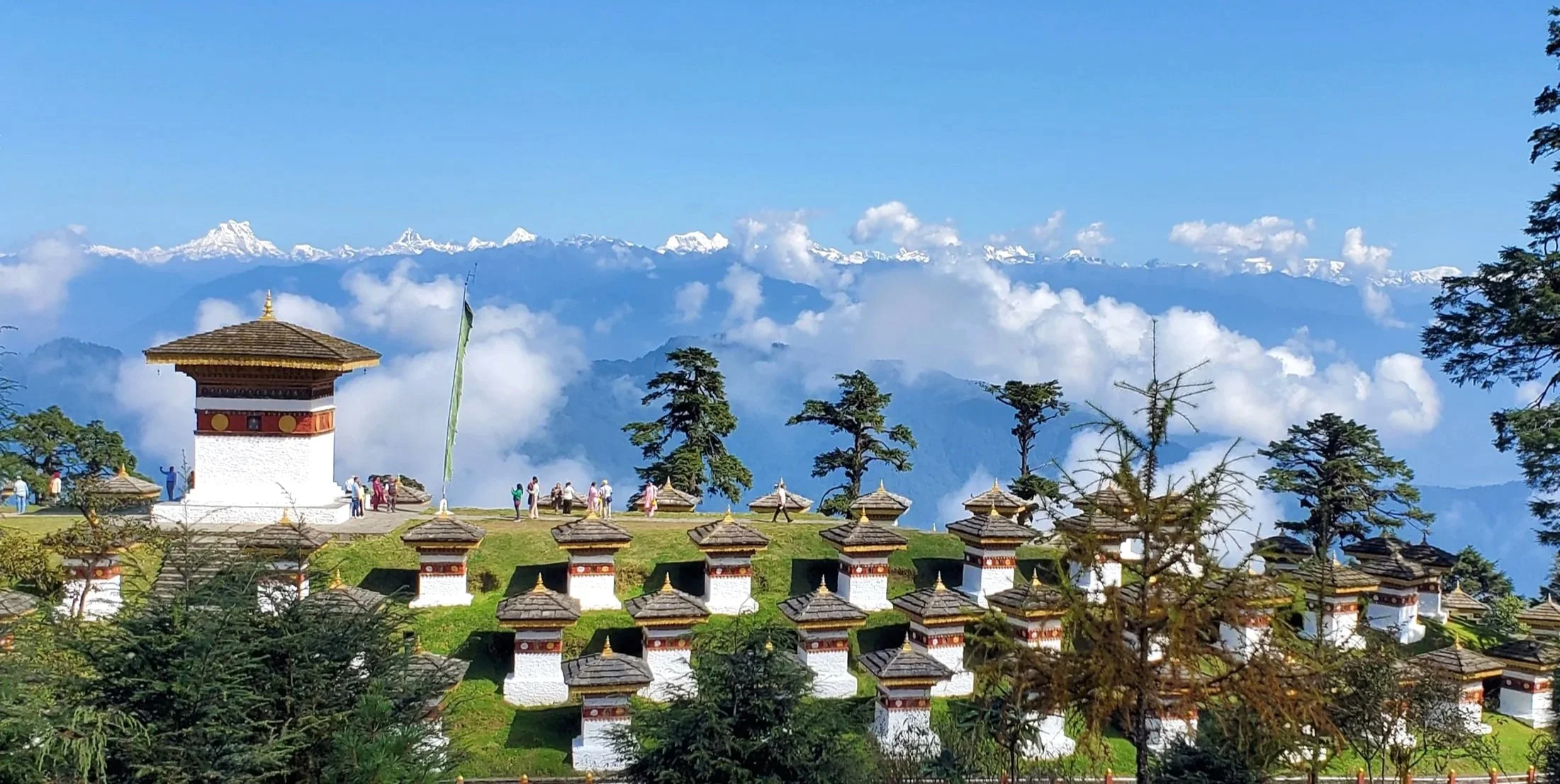 It has 108 stupas or chortens. It was built in 2005 as a Buddhist atonement for the loss of life which occurred when the Bhutanese army fought Assamese militants who were using Bhutan as a base for strikes on their homeland, the Indian state of Assam, wanting it to be independent.