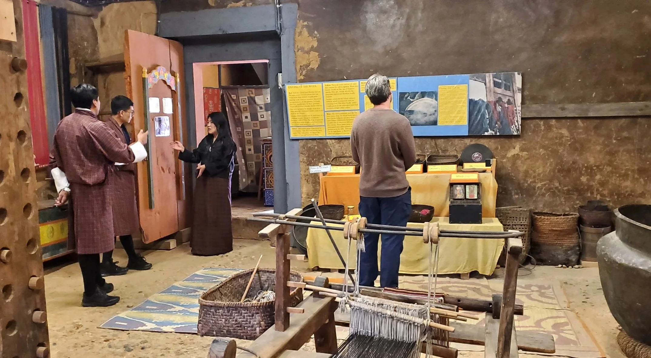 textile weavers demonstrating their technique at the museum