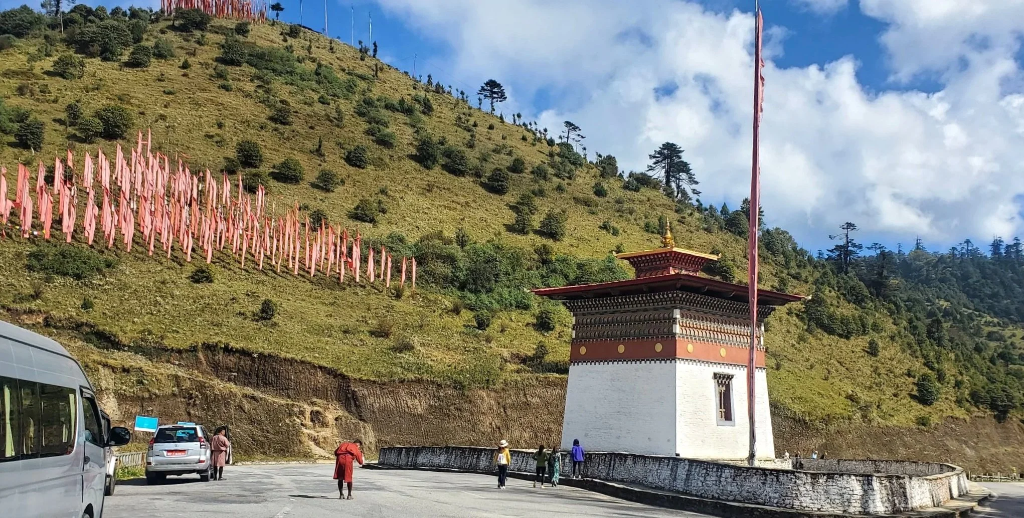 Today’s drive to the town of Punakha took us through the epic Dochu la Pass at 3,140m.