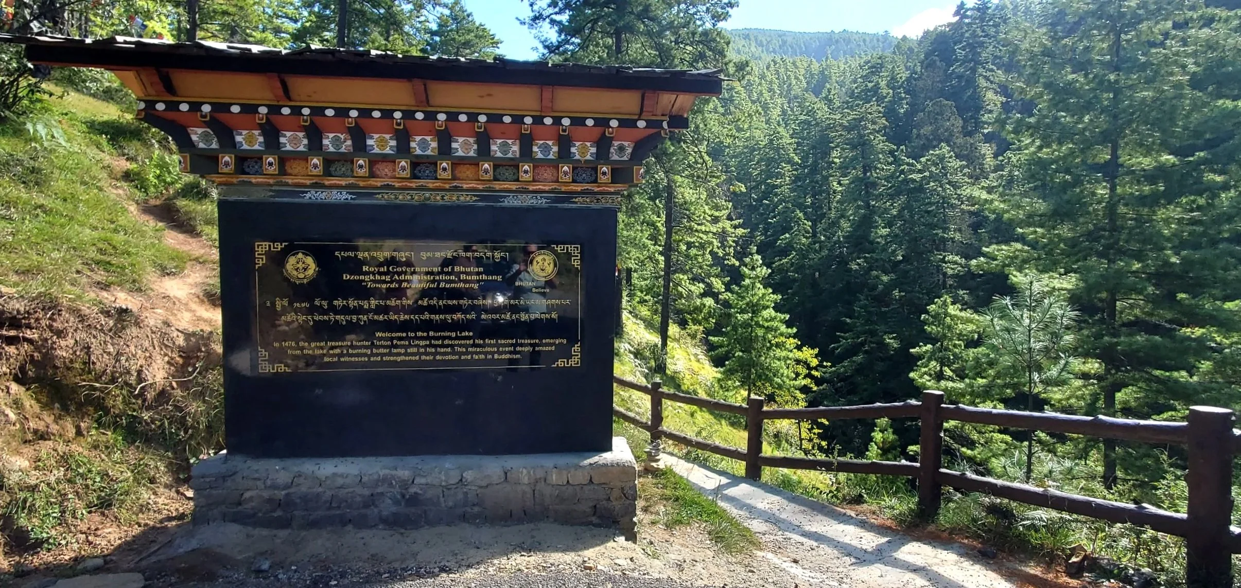 The ‘lake’ is, in fact, a smallish, quiet pool section of a stream. It is a pilgrimage site for many Bhutanese people.
