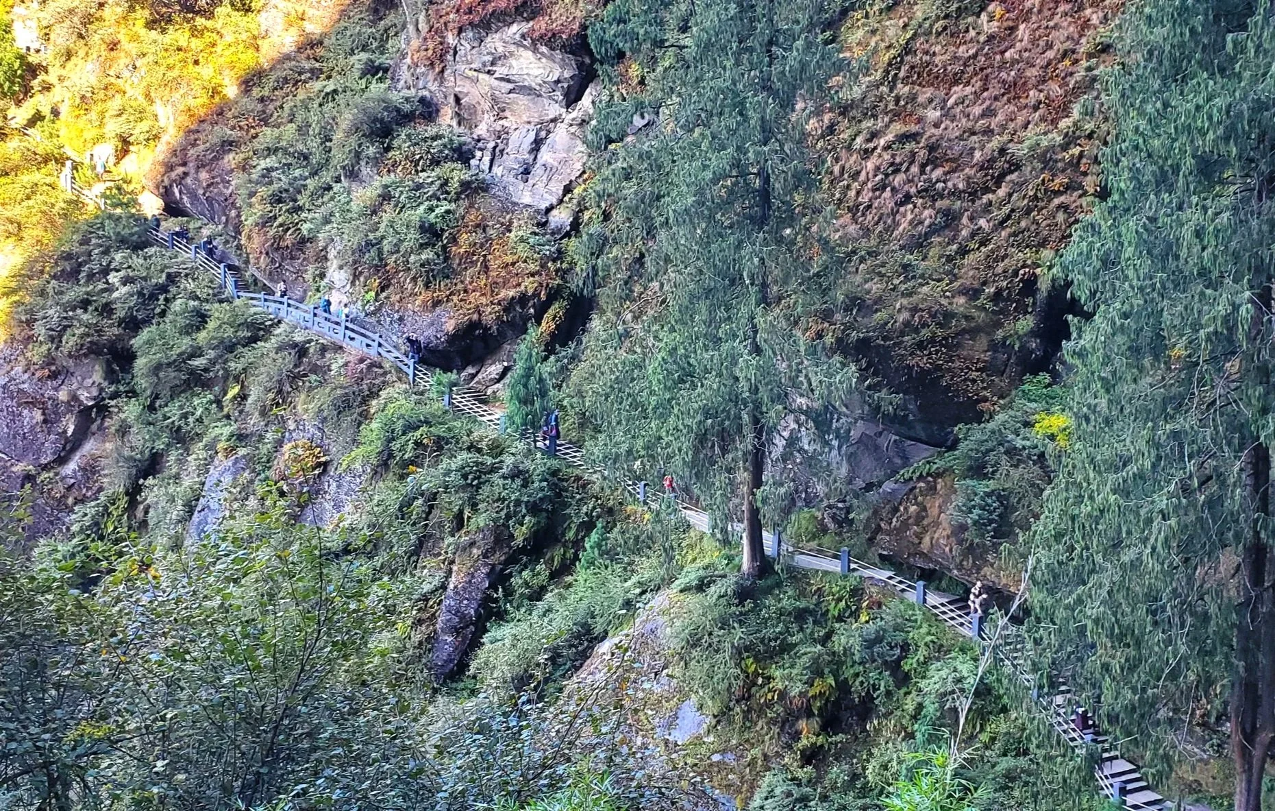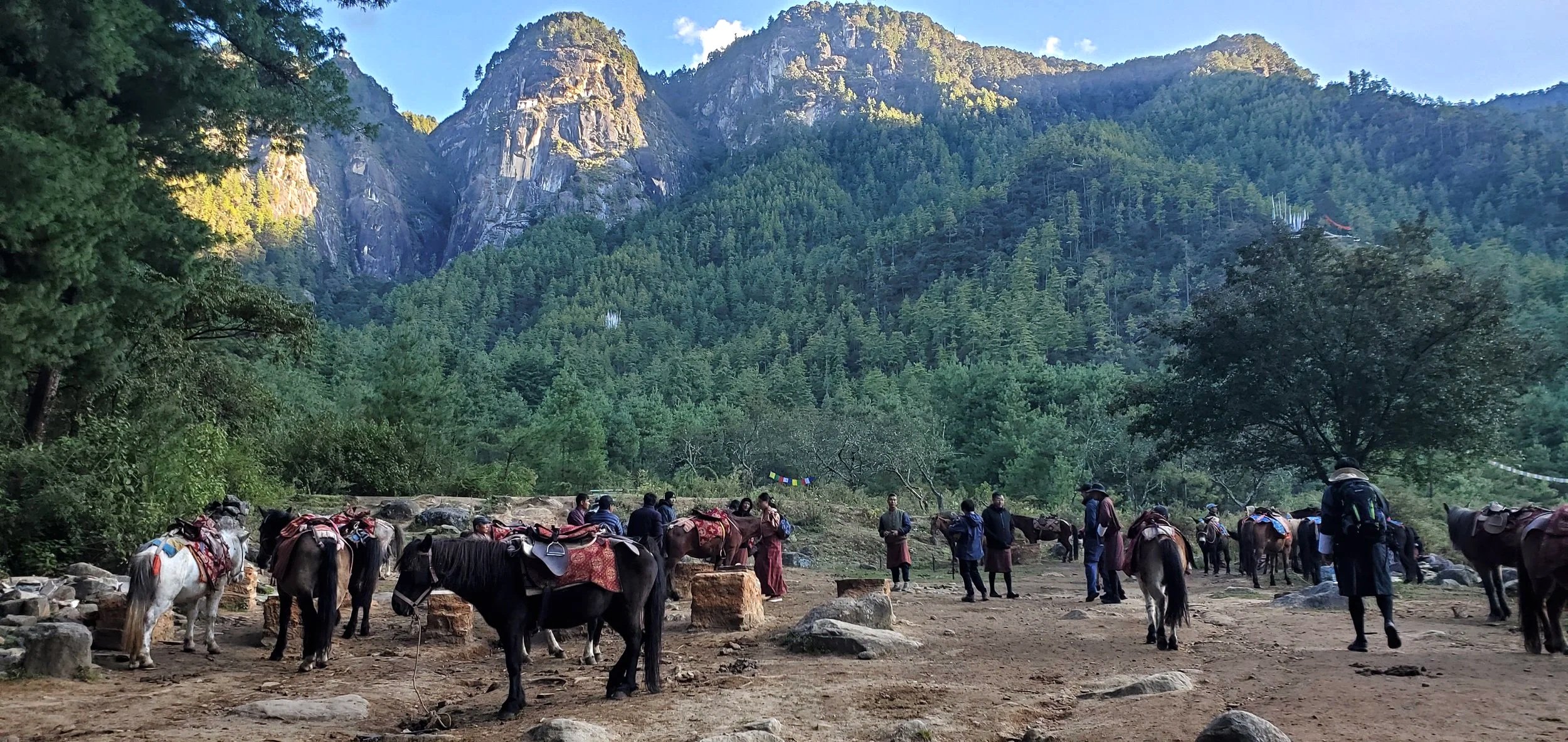 Horses and their handlers milled about. Their main role is to carry supplies to the monastery and the café at the halfway point. Yes, there’s a café.