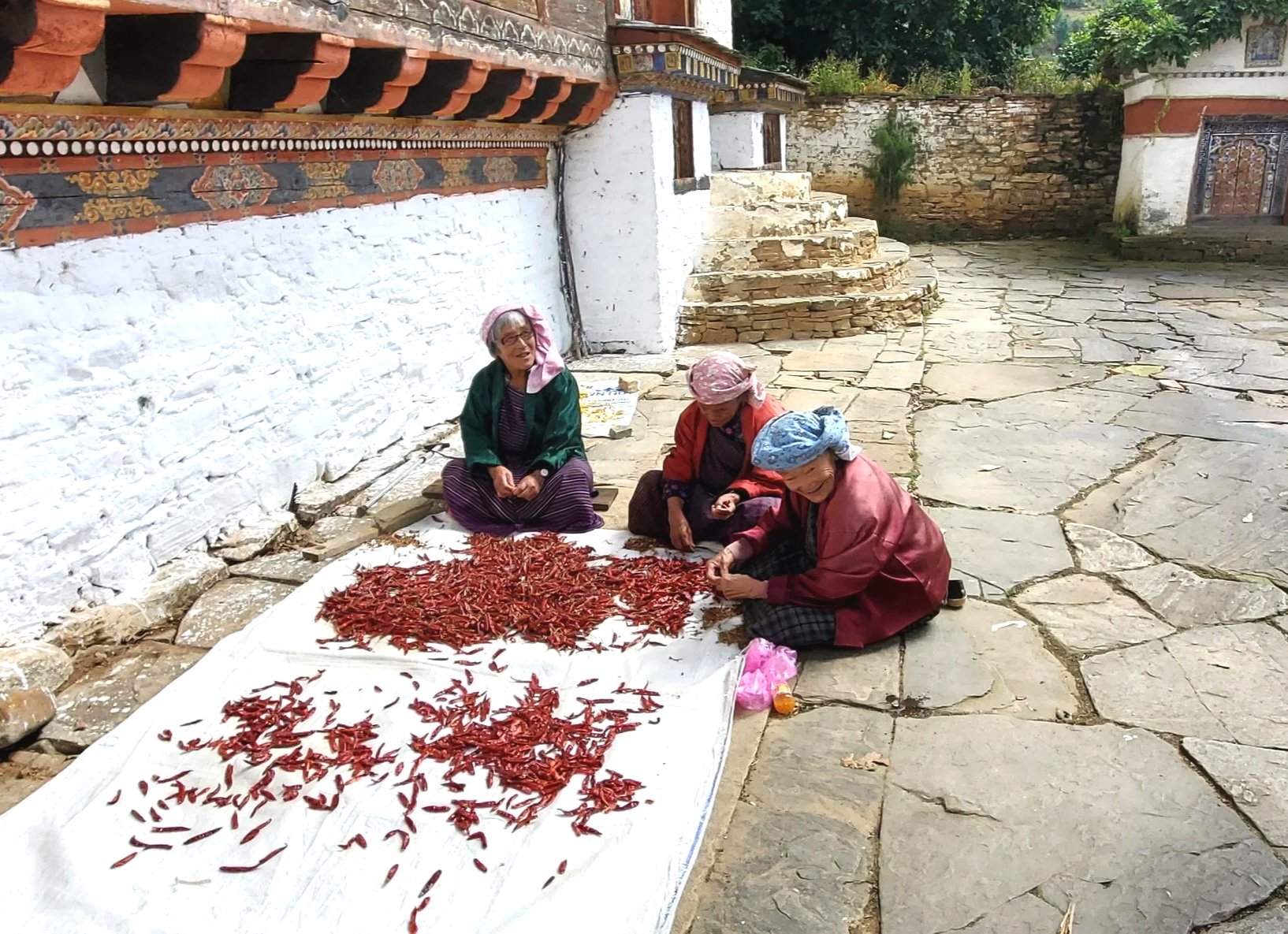 We came across three older women busily sorting chillies.