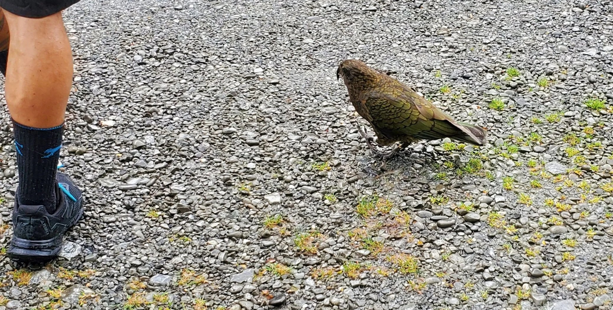 a friendly kea at arthur’s pass village (not my leg)