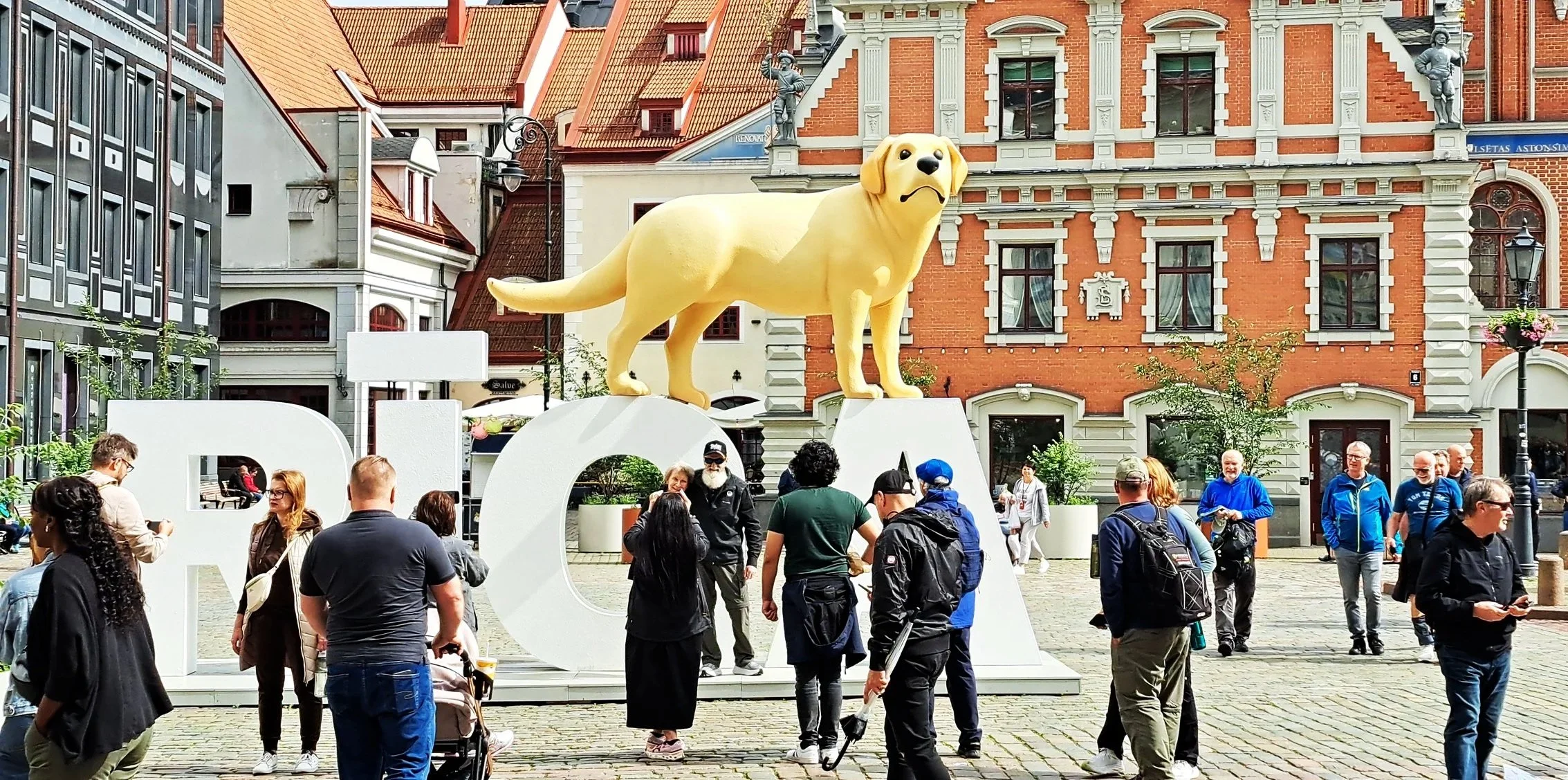 The Blackheads House sits on one side of a square, opposite a giant RIGA sign with an incongruous labrador dog on top. We’re sure there is a good reason for this, but we didn’t find out what it is.