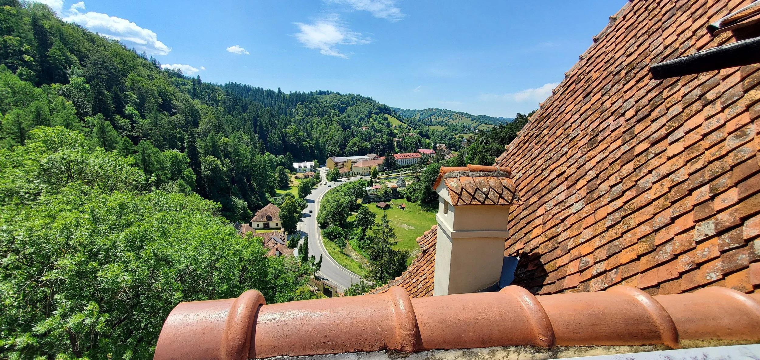 Our hotel, Casa Cranta, sits on a hill with excellent views of the roofs of the town. St Nicholas Cathedral dominates the skyline, with Mt Tampa and the Brasov sign as a backdrop.